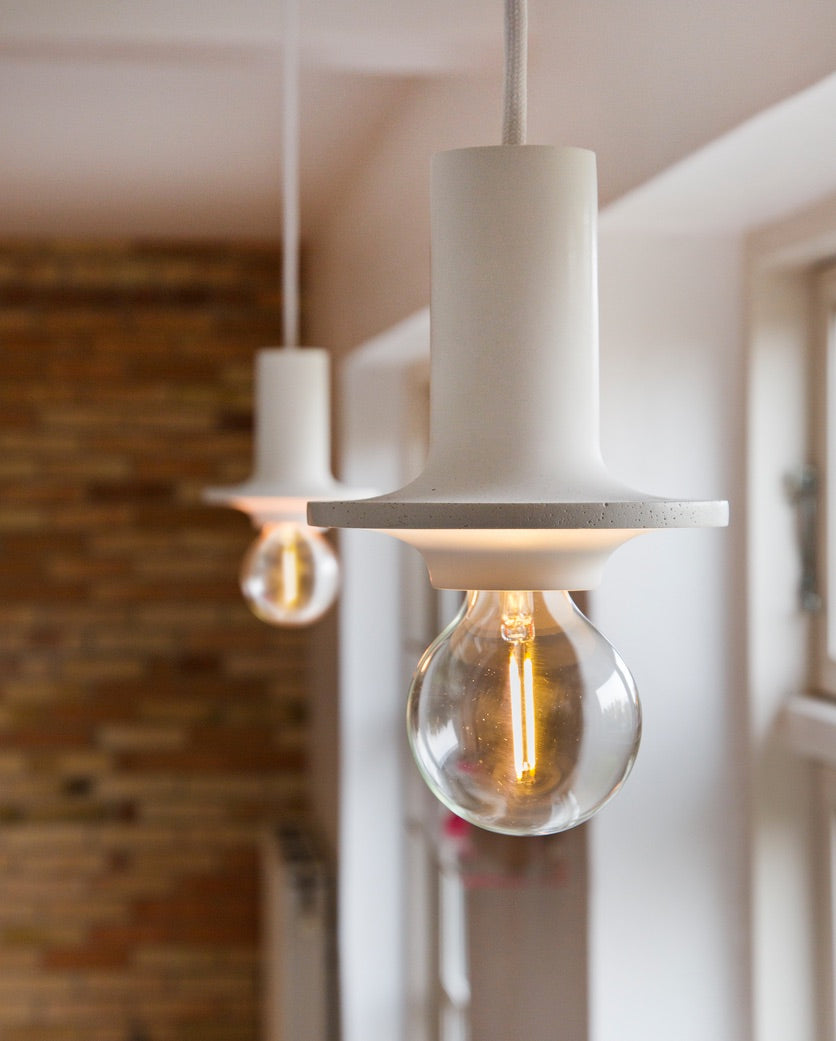 Denne betonlampe er skabt med omtanke for både form og stemning. Den enkle, skulpturelle silhuet og den bløde, matte overflade giver et roligt og harmonisk udtryk, som falder naturligt ind i hjemmet.
